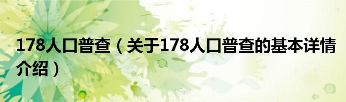本文关于178人口普查的基本详情介绍就讲解完毕,希望对大家有所帮助。
