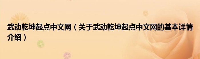 本文关于武动乾坤起点中文网的基本详情介绍就讲解完毕,希望对大家有所帮助。