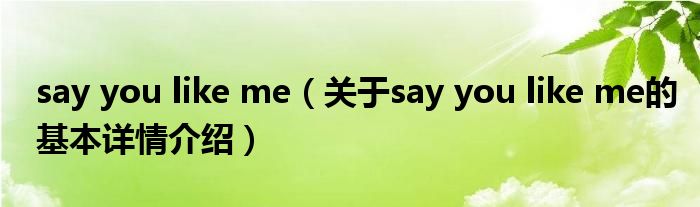 本文关于say you like me的基本详情介绍就讲解完毕,希望对大家有所帮助。