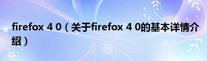 firefox 4 0(关于firefox 4 0的基本详情介绍)