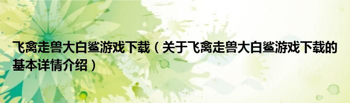 飞禽走兽大白鲨游戏下载(关于飞禽走兽大白鲨游戏下载的基本详情介绍)