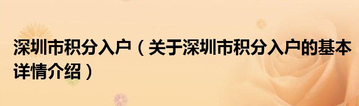 深圳市积分入户(关于深圳市积分入户的基本详情介绍)