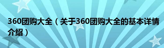 本文关于360团购大全的基本详情介绍就讲解完毕,希望对大家有所帮助。
