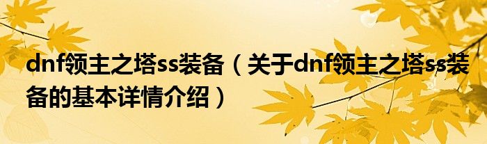 dnf领主之塔ss装备(关于dnf领主之塔ss装备的基本详情介绍)