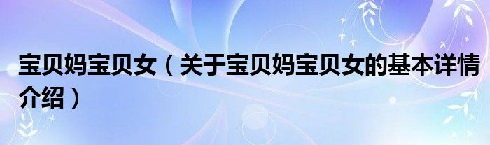 宝贝妈宝贝女(关于宝贝妈宝贝女的基本详情介绍)