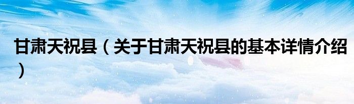 甘肃天祝县(关于甘肃天祝县的基本详情介绍)