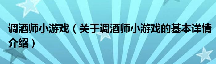 调酒师小游戏(关于调酒师小游戏的基本详情介绍)
