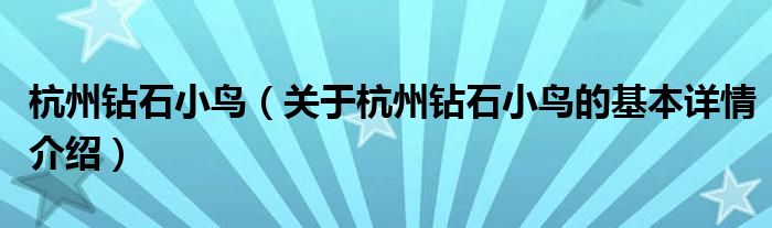 杭州钻石小鸟(关于杭州钻石小鸟的基本详情介绍)