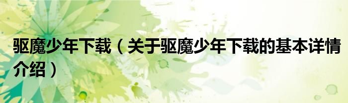 驱魔少年下载(关于驱魔少年下载的基本详情介绍)