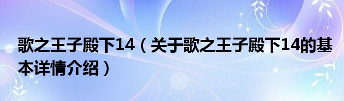 本文关于歌之王子殿下14的基本详情介绍就讲解完毕,希望对大家有所帮助。