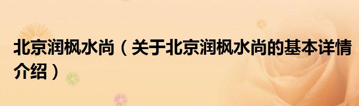 北京润枫水尚(关于北京润枫水尚的基本详情介绍)