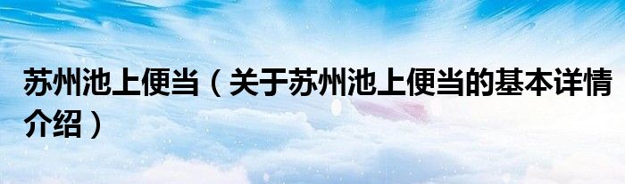 苏州池上便当(关于苏州池上便当的基本详情介绍)