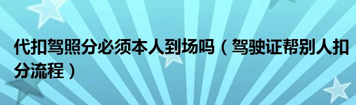 大家好,综合小编来为大家讲解下。代扣驾照分必须本人到场吗,驾驶证帮别人扣分流程这个很多人还不知道,现在让我们一起来看看吧!