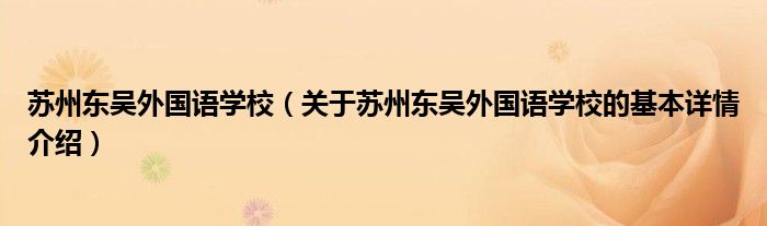 苏州东吴外国语学校(关于苏州东吴外国语学校的基本详情介绍)