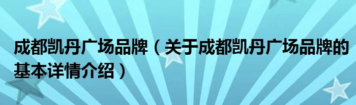 成都凯丹广场品牌(关于成都凯丹广场品牌的基本详情介绍)