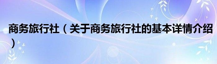本文关于商务旅行社的基本详情介绍就讲解完毕,希望对大家有所帮助。