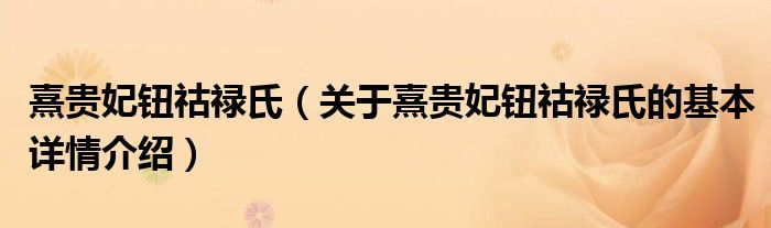 熹贵妃钮祜禄氏(关于熹贵妃钮祜禄氏的基本详情介绍)