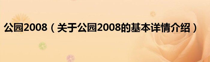 公园2008(关于公园2008的基本详情介绍)