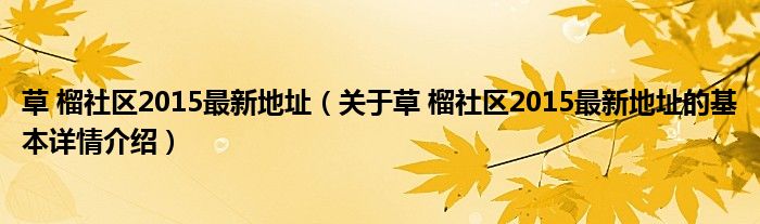 本文关于草 榴社区2015最新地址的基本详情介绍就讲解完毕,希望对大家有所帮助。