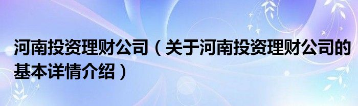 本文关于河南投资理财公司的基本详情介绍就讲解完毕,希望对大家有所帮助。