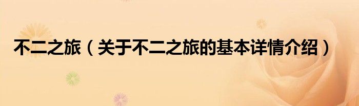 本文关于不二之旅的基本详情介绍就讲解完毕,希望对大家有所帮助。
