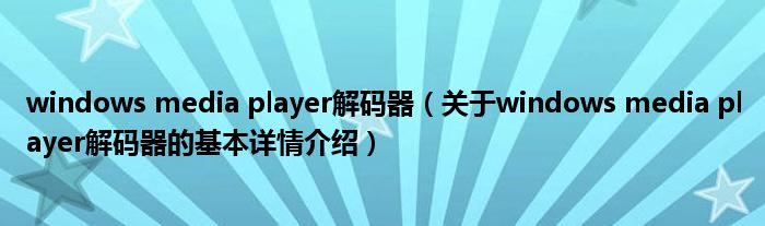 windows media player解码器(关于windows media player解码器的基本详情介绍)