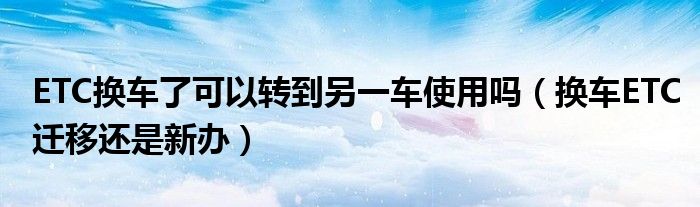 大家好,综合小编来为大家讲解下。ETC换车了可以转到另一车使用吗,换车ETC迁移还是新办这个很多人还不知道,现在让我们一起来看看吧!