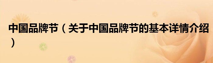 中国品牌节(关于中国品牌节的基本详情介绍)