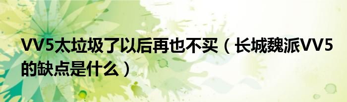 VV5太垃圾了以后再也不买(长城魏派VV5的缺点是什么)