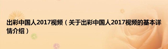 本文关于出彩中国人2017视频的基本详情介绍就讲解完毕,希望对大家有所帮助。