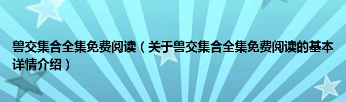 兽交集合全集免费阅读(关于兽交集合全集免费阅读的基本详情介绍)