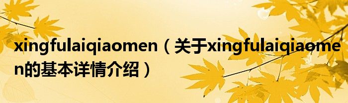 xingfulaiqiaomen(关于xingfulaiqiaomen的基本详情介绍)