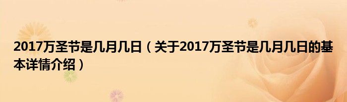 2017万圣节是几月几日(关于2017万圣节是几月几日的基本详情介绍)