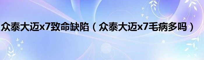 众泰大迈x7致命缺陷(众泰大迈x7毛病多吗)