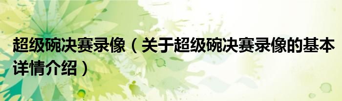 超级碗决赛录像(关于超级碗决赛录像的基本详情介绍)