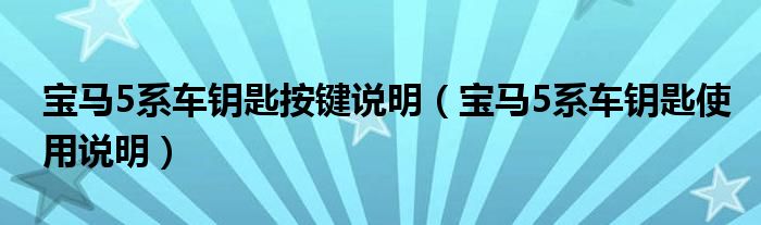 大家好,综合小编来为大家讲解下。宝马5系车钥匙按键说明,宝马5系车钥匙使用说明这个很多人还不知道,现在让我们一起来看看吧!
