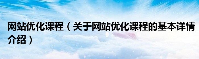 网站优化课程(关于网站优化课程的基本详情介绍)