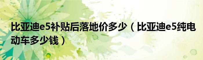 大家好,综合小编来为大家讲解下。比亚迪e5补贴后落地价多少,比亚迪e5纯电动车多少钱这个很多人还不知道,现在让我们一起来看看吧!