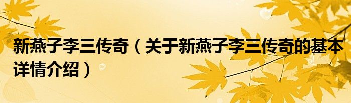 本文关于新燕子李三传奇的基本详情介绍就讲解完毕,希望对大家有所帮助。
