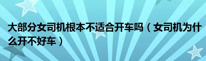 大家好,综合小编来为大家讲解下。大部分女司机根本不适合开车吗,女司机为什么开不好车这个很多人还不知道,现在让我们一起来看看吧!