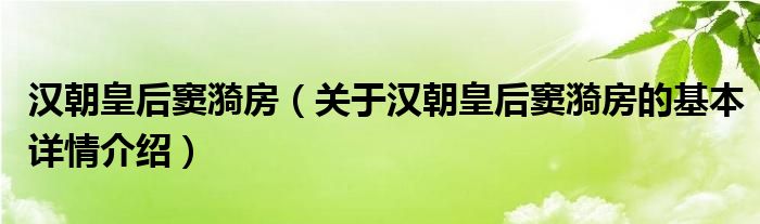 汉朝皇后窦漪房(关于汉朝皇后窦漪房的基本详情介绍)