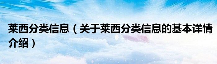 莱西分类信息(关于莱西分类信息的基本详情介绍)