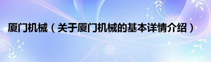 本文关于厦门机械的基本详情介绍就讲解完毕,希望对大家有所帮助。