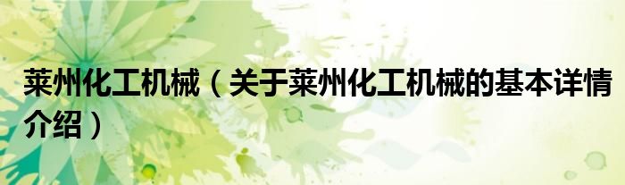 本文关于莱州化工机械的基本详情介绍就讲解完毕,希望对大家有所帮助。
