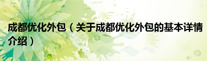 成都优化外包(关于成都优化外包的基本详情介绍)