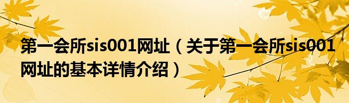 第一会所sis001网址(关于第一会所sis001网址的基本详情介绍)