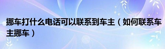 挪车打什么电话可以联系到车主(如何联系车主挪车)