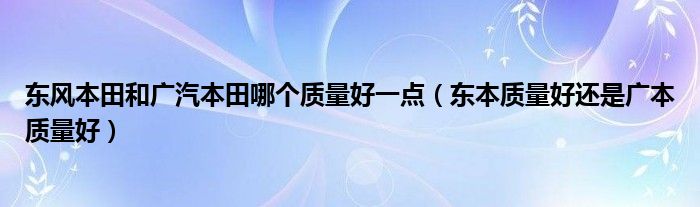 东风本田和广汽本田哪个质量好一点(东本质量好还是广本质量好)