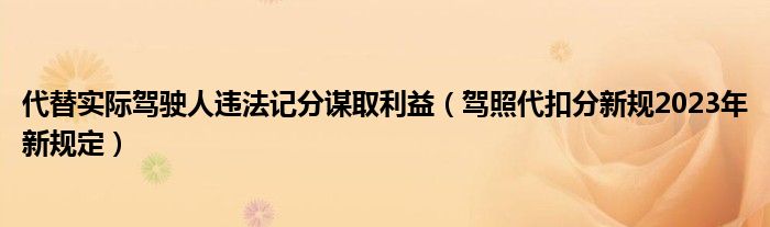 代替实际驾驶人违法记分谋取利益(驾照代扣分新规2023年新规定)
