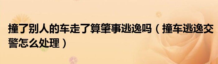 大家好,综合小编来为大家讲解下。撞了别人的车走了算肇事逃逸吗,撞车逃逸交警怎么处理这个很多人还不知道,现在让我们一起来看看吧!